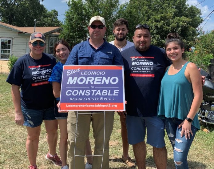 KSAT-TV obtained cell phone camera footage that showed six Bexar County Precinct 2 deputies line up in front of the home of fellow deputy Leonicio Moreno in February and stripping him of his service weapon just weeks after he filed to run against their boss in next year’s election.