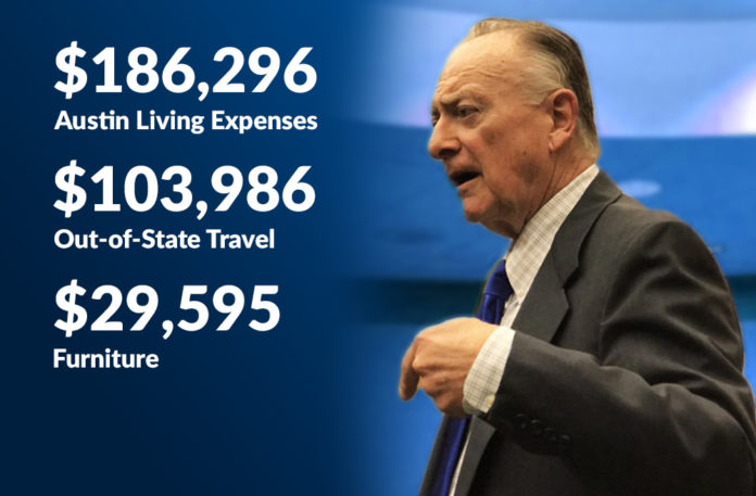 Flynn has spent the most in the category of Austin living expenses, which include housing and food, for a total of $186,296. About $165,125 has gone to rent an apartment in Austin each year although the legislature only meets every two years. His average monthly rent payment over the past decade has been $1,461, but these days it’s closer to $2,000 per month.