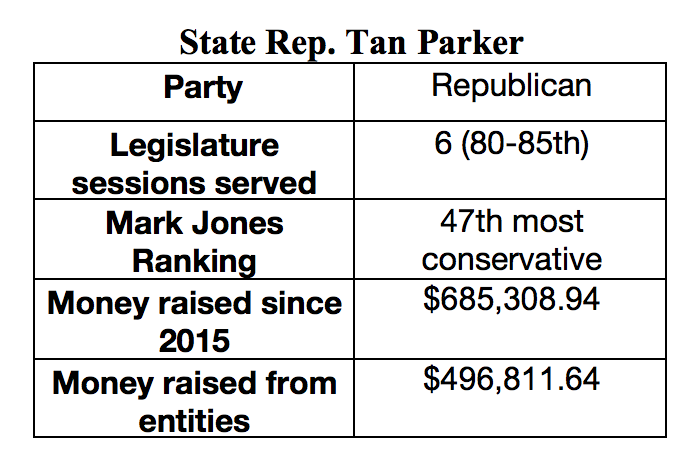 Fiscal conservatives see strength and experience in his chairmanship of the House Committee on Investments and Financial Services. But Parker is not a member of the Freedom Caucus. His voting record ranks Parker 47th most conservative on Rice Prof. Mark Jones’ biennial list of House members.